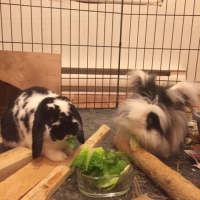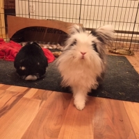 Une magnifique femelle angora et un affectueux mâle bélier. Deux petites bêtes de taille moyenne nés le 1er octobre 2019 et très attachantes.