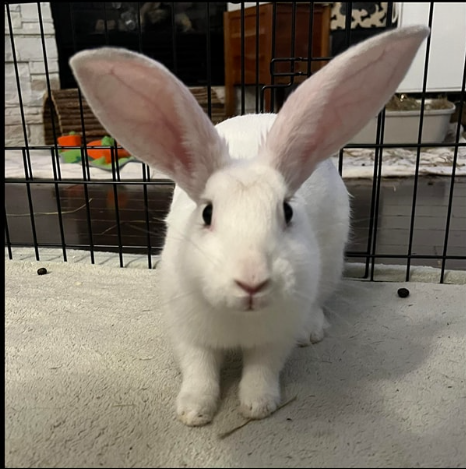 Pongo est un lapin très calme et gentil.  Il aime avoir de petits moments de câlins sur le lit.