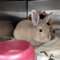 Pumpkin est un charmant jeune lapin, un peu réservé mais au cœur tendre. Timide au départ, il observe son environnement avec prudence et prend son temps pour se sentir à l’aise. Cependant, une fois en confiance, il se montre affectueux et apprécie les moments de douceur avec ses humains.