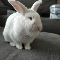 Snoe est propre en litière. Elle pourrait cohabiter avec un chat, des enfants ainsi qu’un lapin mâle stérilisé.