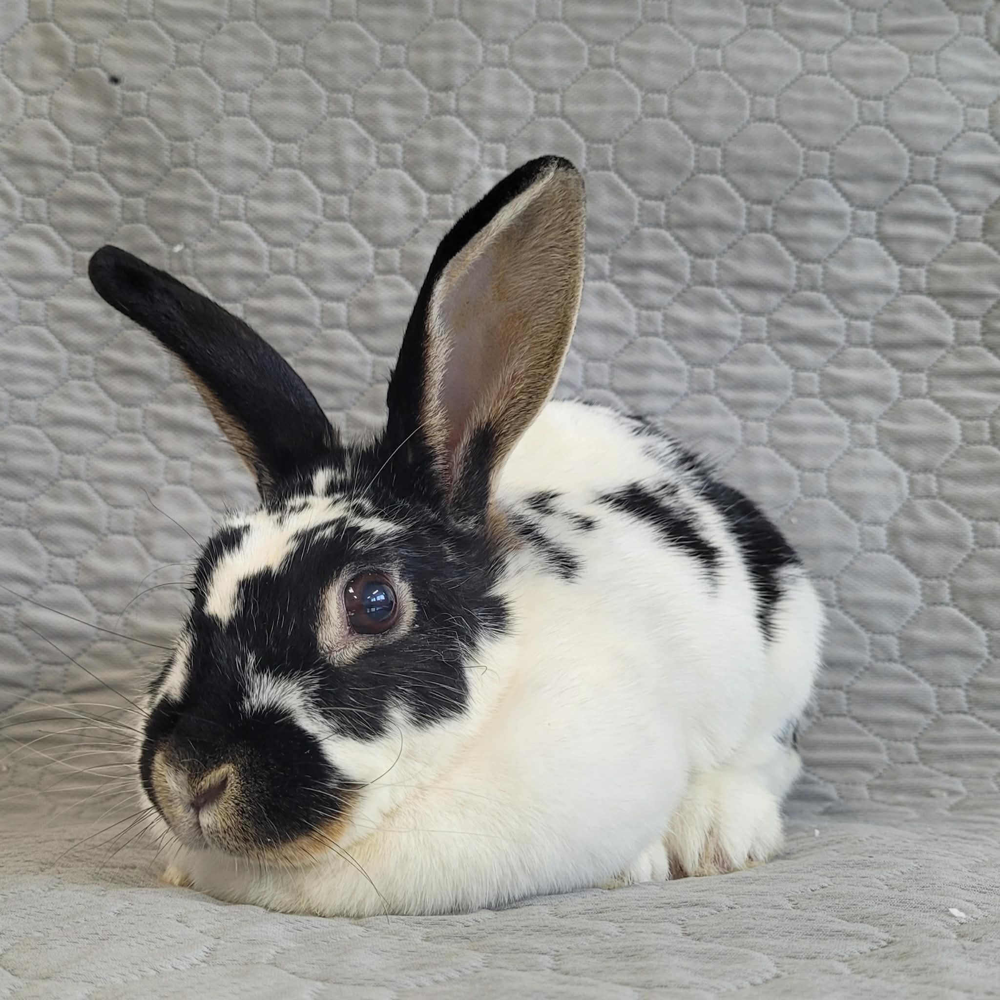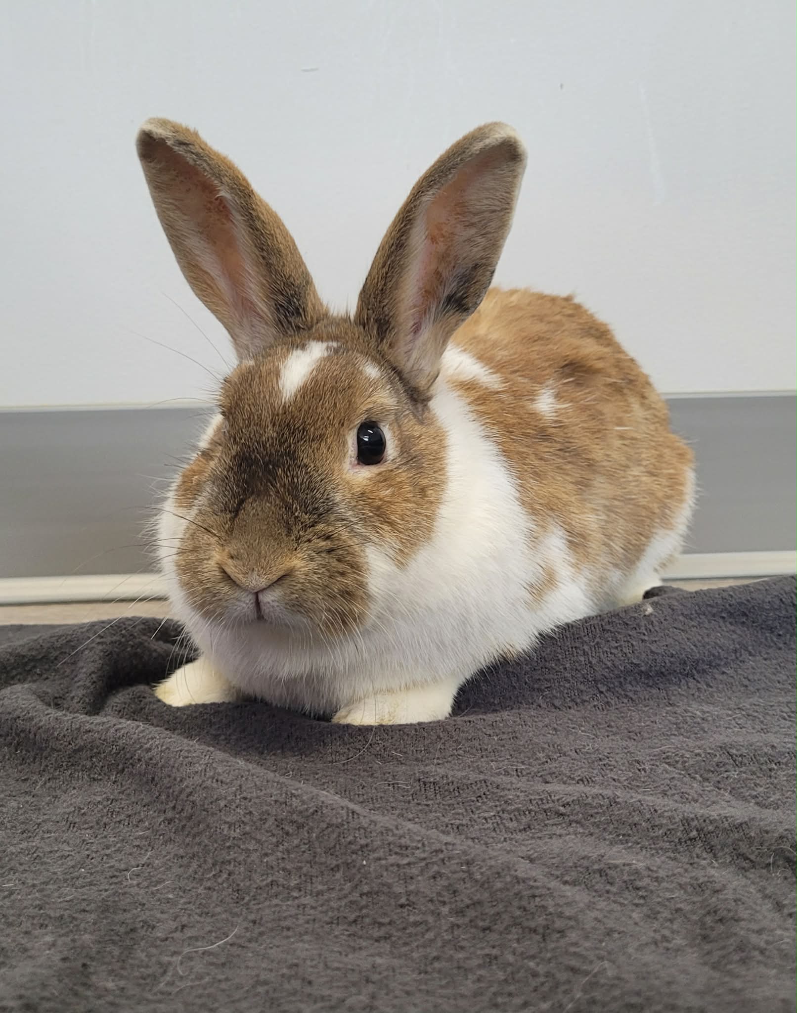 Nous ne connaissons pas sa compatibilité avec les chiens, les chats et les jeunes enfants. Il pourrait vivre avec un autre lapin. Il est propre en litière à 90%.