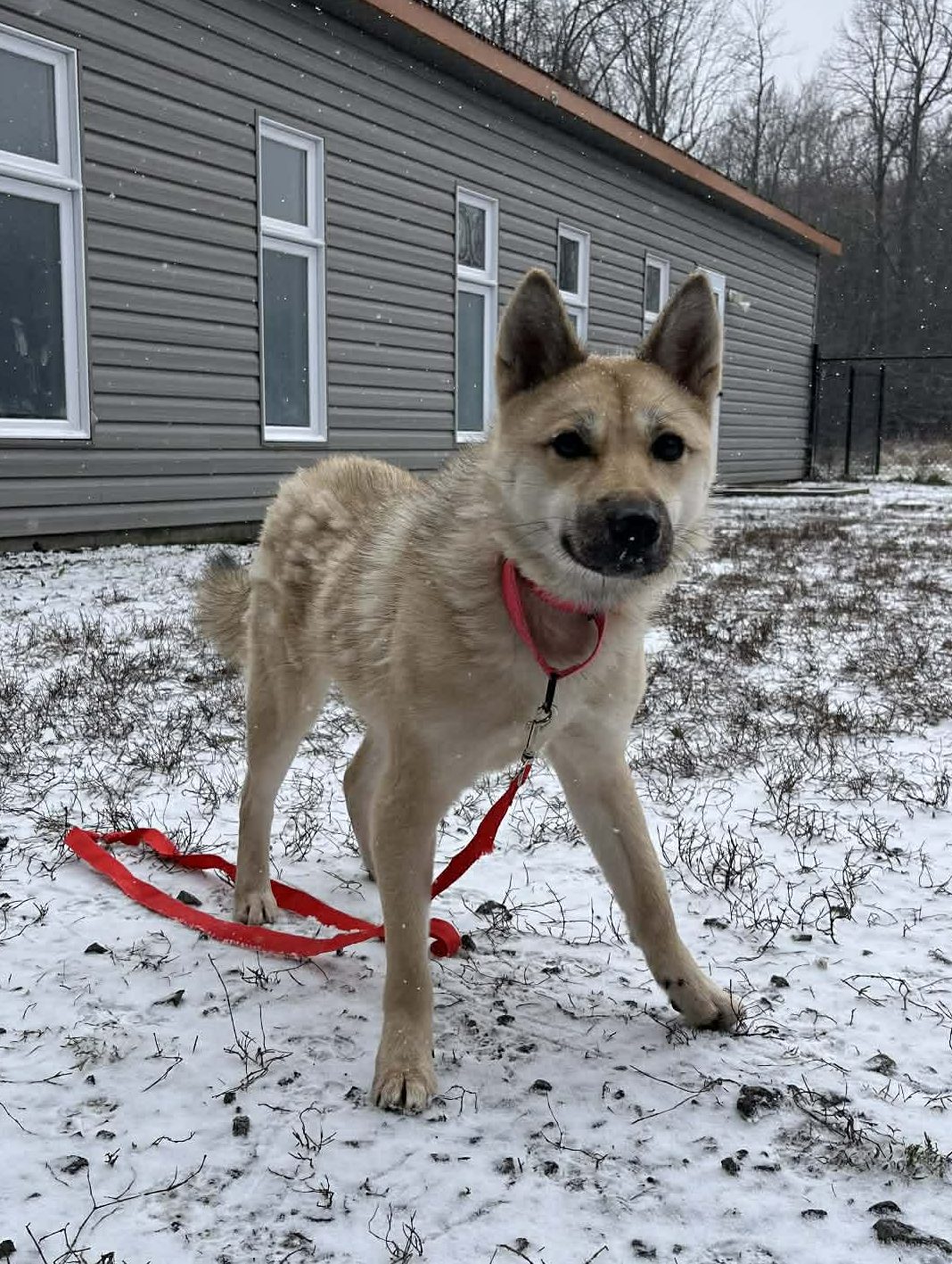 Une belle femelle de type Jindo croisé âgé de 1 an et qui pèse 11,3 kg.