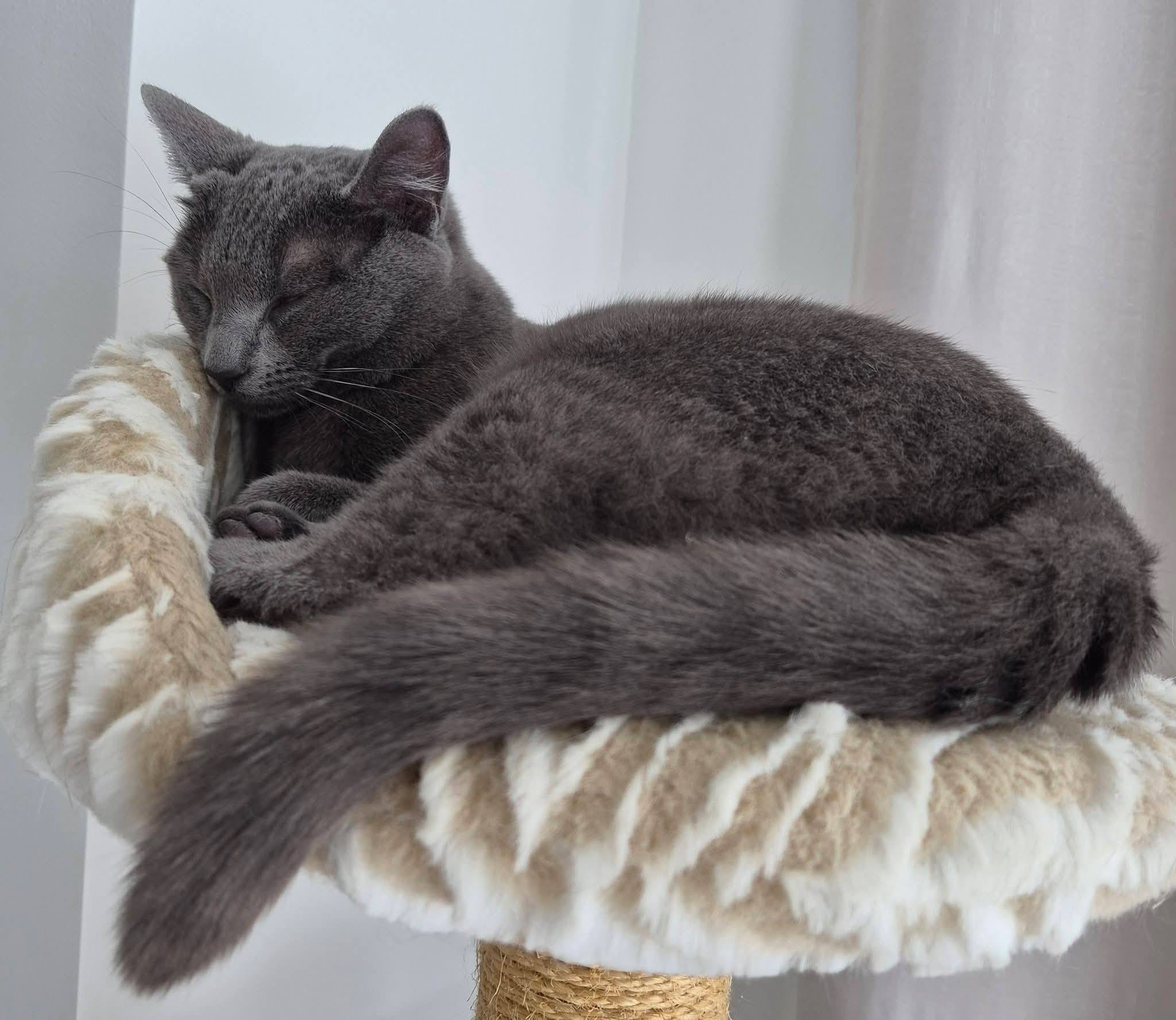 Voici Mark! Un beau chat gris! Sous ses airs de Grumpy Cat musclé, Mark est juste un gros bébé! C’est un gros clown qui adore jouer avec son jouet flamant rose. Et tasser vous de là, car il...