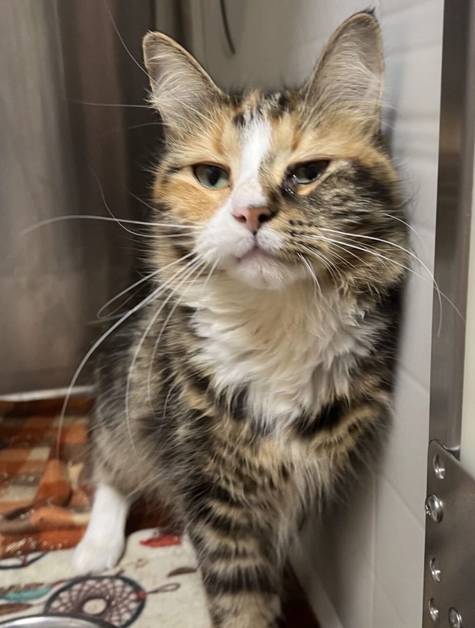 Une douce et ravissante femelle âgée de 7 ans, dégriffée aux quatre pattes.