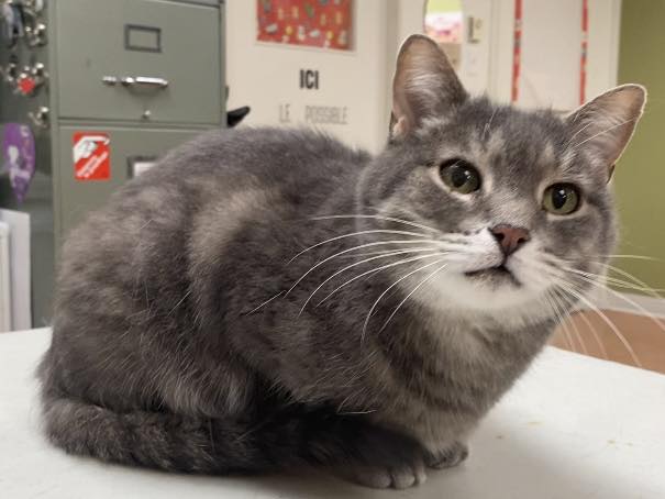 Une jolie femelle adulte qui a été confiée après le départ de sa maman en CHSLD. Comme elle, Peanut recherche un endroit confortable où passer ses vieux jours.