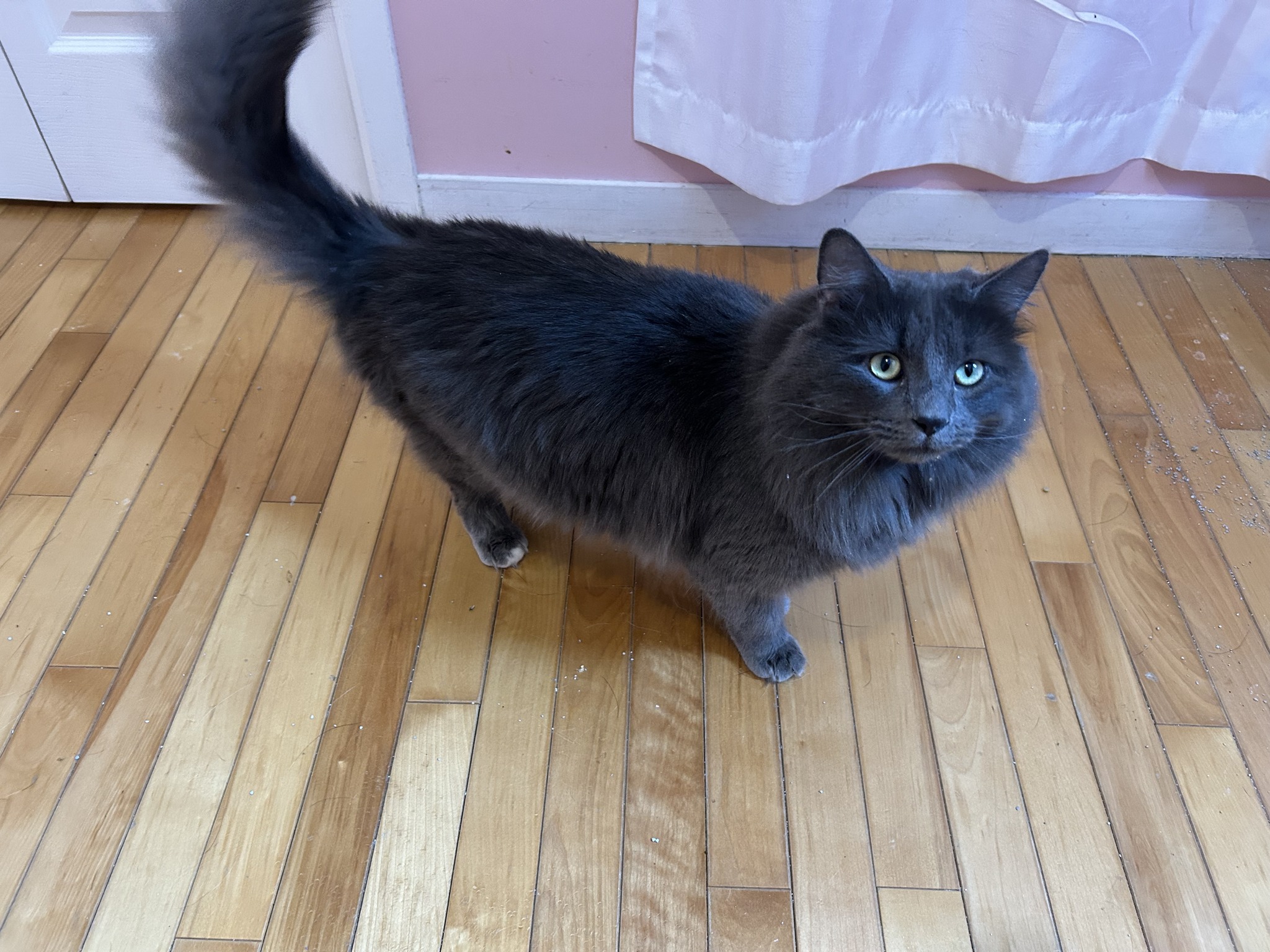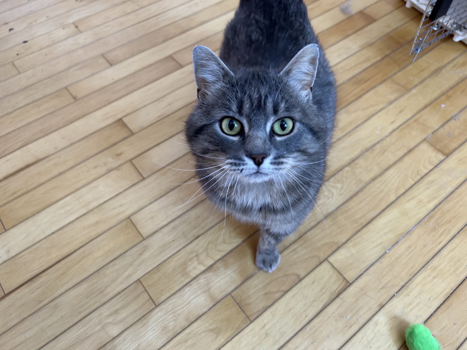 Un magnifique matou gris d’environ 1 an.
