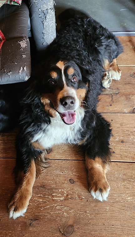 Enzo est un bouvier bernois mâle de six ans pesant 110 livres.