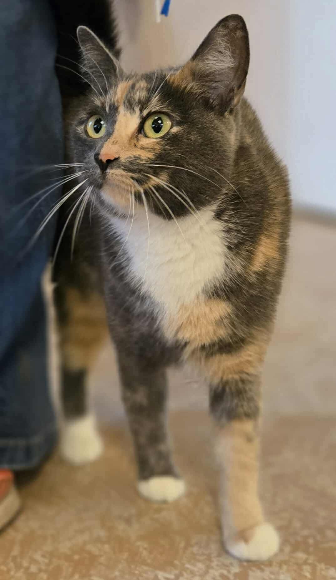 Avec son physique d’élégante ballerine, ses yeux verts-dorés pétillants et son joli pelage blanc et tabby, cette charmante féline est prête à l’adoption et la rencontrer… c’est l’adopter!